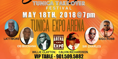 Fri. 18th - Tunica Takeover: The Kings of Southern Soul. Sir Charles Jones, Latimore, O.B. Buchana, Bigg Robb, Willie Clayton, Calvin Richardson, Tunica Arena & Expo Center, 3873 US-61, Tunica, Miss. 901-509-5882. 662-363-3299.